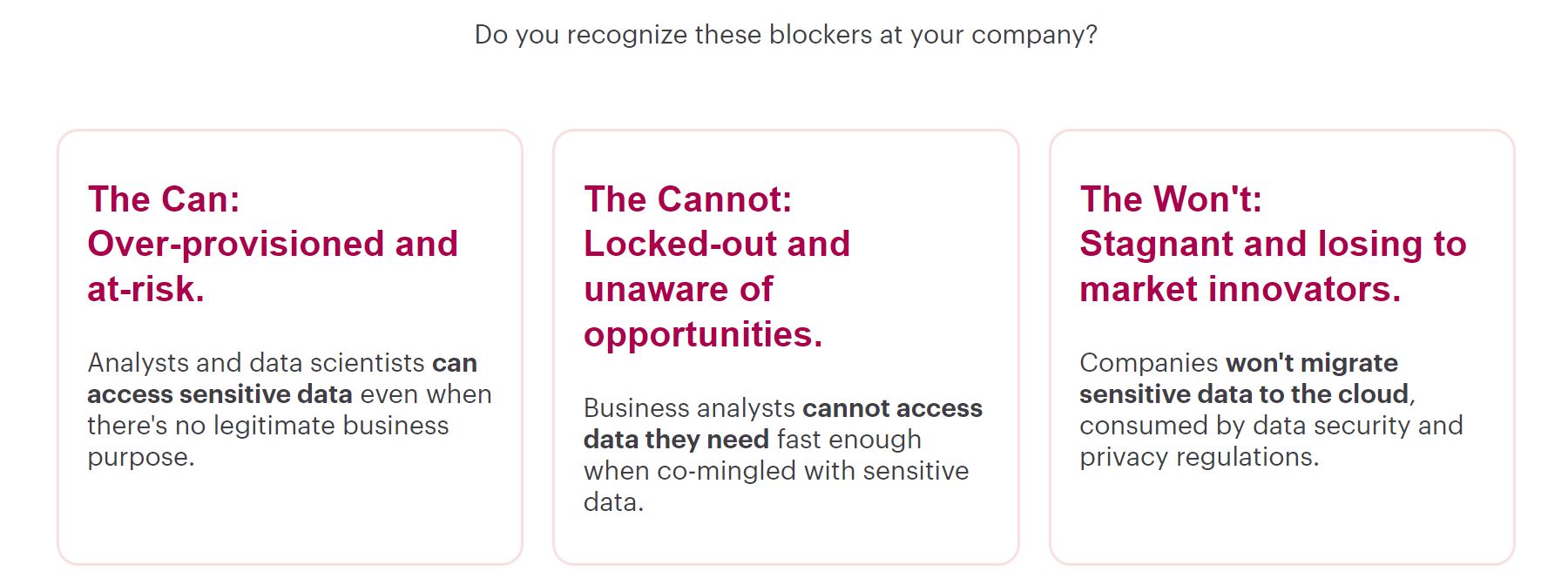 The third group of companies falls into a different trap altogether. They become overwhelmed by the data landscape and ignore opportunities to modernize their data platforms. Fears surrounding data security and privacy implications hold them back from embracing data democratization and innovation.